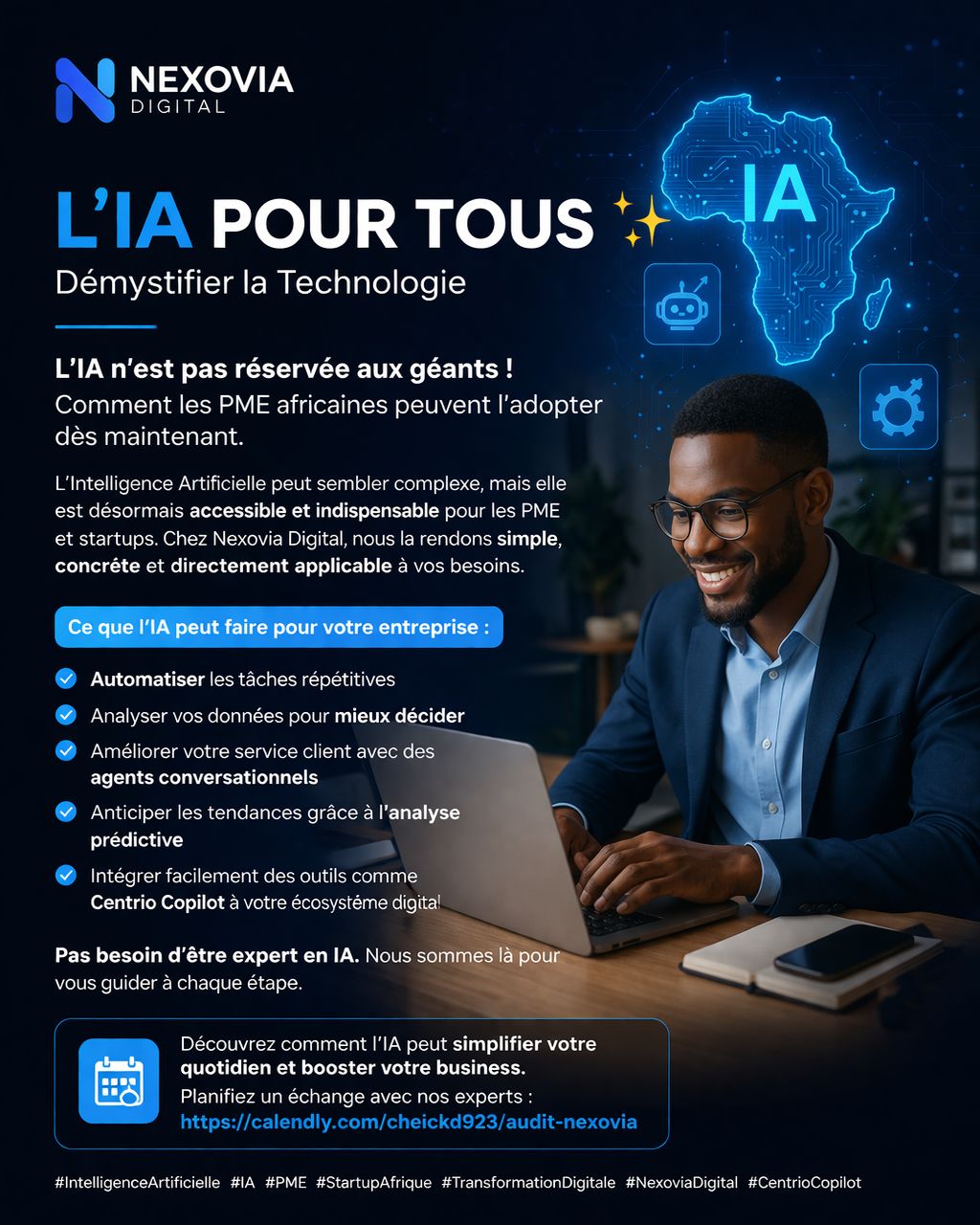 Nous croyons que l’IA n’est pas réservée aux grandes entreprises. Chaque PME à Bamako, Sikasso ou Ségou mérite les mêmes outils que les leaders mondiaux.